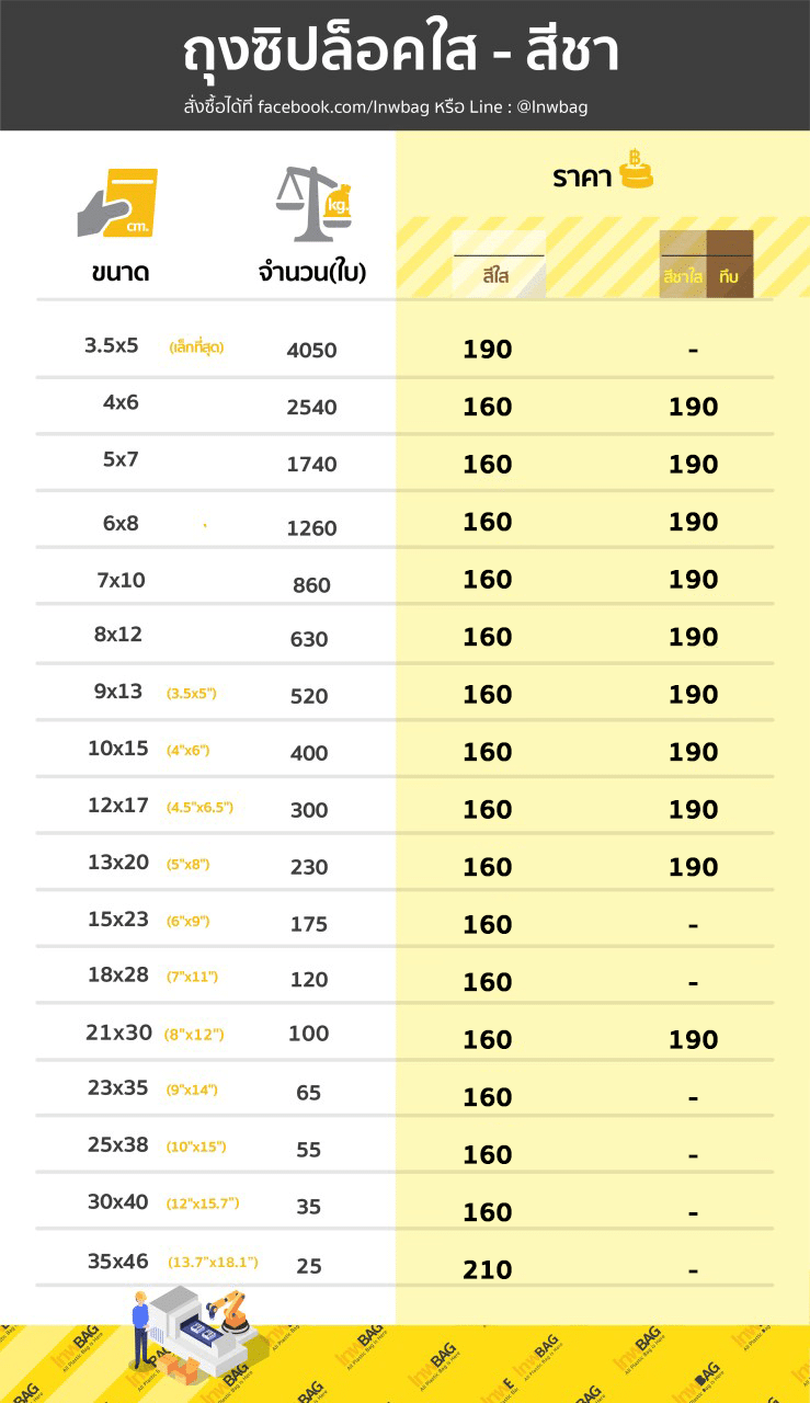 ตารางขนาด และราคาถุงซิปล็อคใส - ซองซิปใส - ถุงซิบล็อคใส - ซองซิบใส